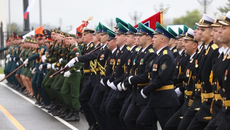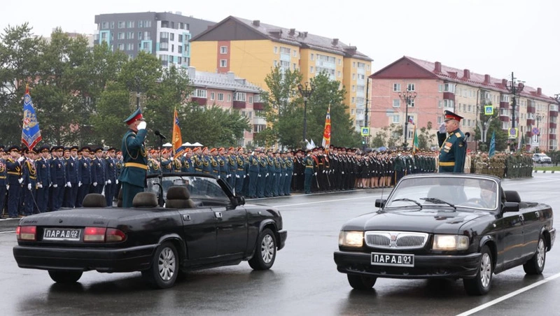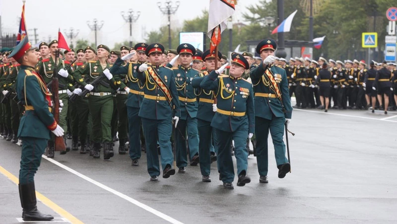 Парадным строем по площади Победы прошли расчёты офицеров, сержантов, солдат островных соединений и воинских частей, а также представители силовых ведомств. Отдельного внимания удостоились военнослужащие-женщины, ученики кадетской школы, кадетского класса УМВД России по Сахалинской области, курсанты УМЦ «Авангард» и Центра «Воин», юнармейцы и казаки.