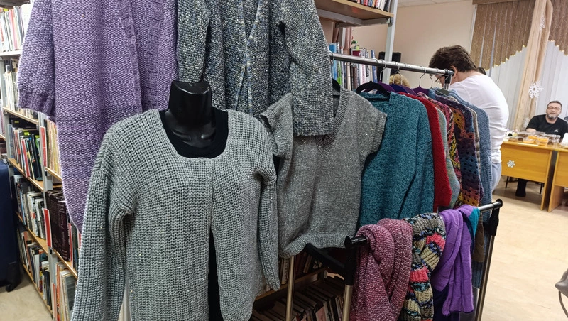 – Узнала про выставку-ярмарку в библиотеке Анивы от сестры, она здесь живёт, и я решила поучаствовать. В Южно-Сахалинске тоже доводилось выставлять свой товар. Захаживали туристы, спортсмены, которые накупили у меня шарфов и повезли на материк. Вяжу из пряжи с детства, причём не по правилам, не высчитываю, у меня своя техника.