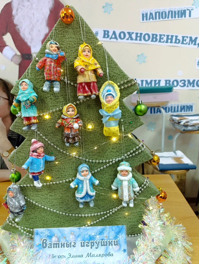 – Занимаюсь этим видом прикладного творчества второй год. Увидела в Интернете, очень понравилось и тоже захотелось попробовать. Работа, конечно, кропотливая, тонкая, а самое сложное для меня – расписывать лицо. Ведь оно должно быть милым, выразительным. Игрушка очень маленькая – обычно 9–10 см, изготавливается на основе каркаса из проволоки, который оборачивается слоем сухой ваты, закрепляется нитками, потом наносится слой ваты с клейстером, она должна высохнуть, затем уже формируется образ. На новое хобби время выкраиваю в основном по вечерам. Как же стихи? Муза пока не посещает, пусть отдохнёт.