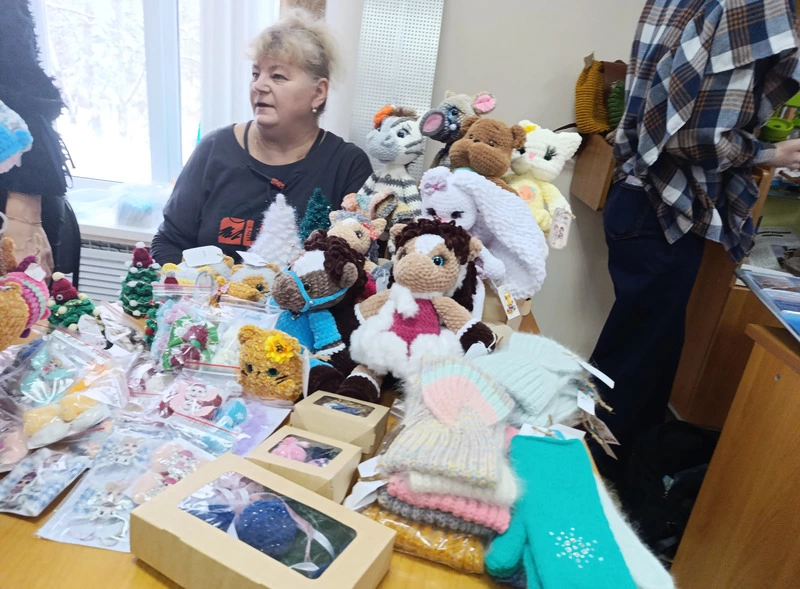 Ну, и конечно, внимание покупателей привлекал целый табун лошадок. У белошвейки Людмилы Петряевой они были мягкими и лёгкими, как и подковы на счастье, да ещё с удобными петлями, чтобы подвешивать на ёлку. У Ольги Шахназарян – связанные из пряжи, небольшие, зато очень симпатичные, с забавными гривами. Ходовой товар у юных продавцов, в роли которых выступили дети мастерицы, разбирали хорошо.
