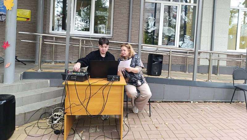 У открытого микрофона с импровизированной сцены на библиотечном крыльце звучали стихотворные строки в исполнении желающих их почитать. Оля Ковпаева играла на флейте. А по всей территории при храме литературы размещалось множество площадок. На двух из них стихи нужно было сочинять. Поэтические строки про осень сочинители старательно выводили фломастером на доске, тут была полная свобода творчества. А вот за столом с карточками, на которых были записаны слова, четверостишие следовало составлять с их использованием. А потом переписать на вырезанный из бумаги «осенний лист» и прикрепить на специальный стенд.