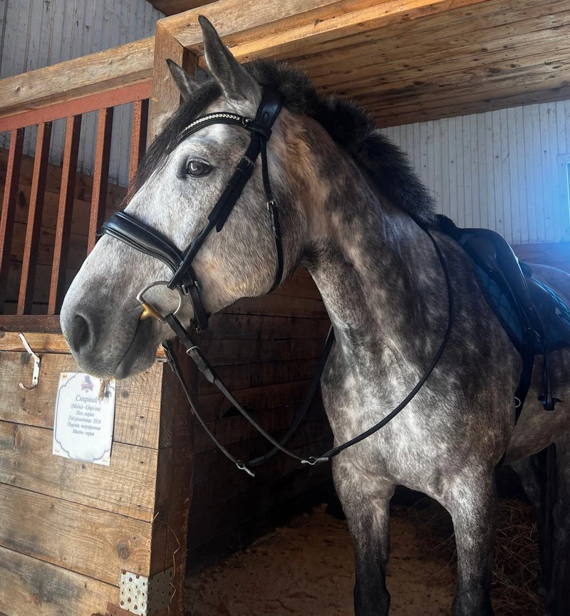– Наш могучий добряк Смирный – полукровка, мама – орловская рысистая, папа – английской чистокровной верховой породы. А назвали его так потому, что малышом смирно ходил со своей мамой, не шалил. Она его старалась увести от людей, спрятать от чужих глаз. Вы рос спокойным, душевным, послушным, поэтому его любят приглашать на фотосессии. И собой красив: серый в яблоках, большой, сильный. При этом один из немногих коней, способных участвовать в соревнованиях по конкуру с максимальной высотой препятствий. Приносит наездникам взрослые разряды. Зимние снимки со скакунами получаются эффектными. К тому же предлагаем прокат лошадей, экскурсии на конюшню.