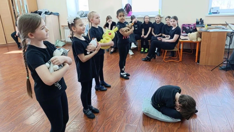 В ансамбле состоят 19 детей: уже знакомые нам София Ахонькова, Диана Попова, Роза Кан, Карина Абабкова, а также Анна Мясникова, Вера Блынская, Амира Мамедова, Ульяна Иванова, Мария Аксютенко, Ульяна, Полина и Эвелина Клочковы, София Лаврикова, Софья Пустовалова, София Курдюмова, Кира Борисова, Марселла Фоминых, Александра Чихичина и Юрий Новиков. На занятии все пели вдохновенно, включая Анну Александровну.