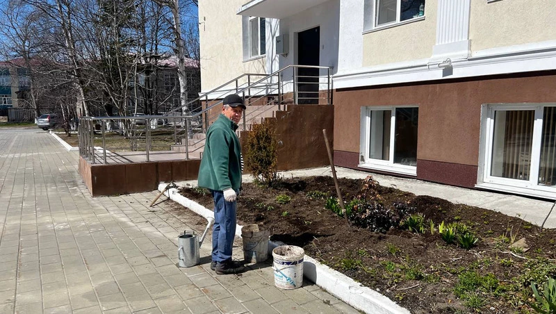 Кроме того, у здания администрации, возле помещения диспетчерской службы неравнодушный сотрудник Александр Васильевич Дунаевский в своё свободное время возделывает клумбу, подготавливая её к сезону летнего цветения.