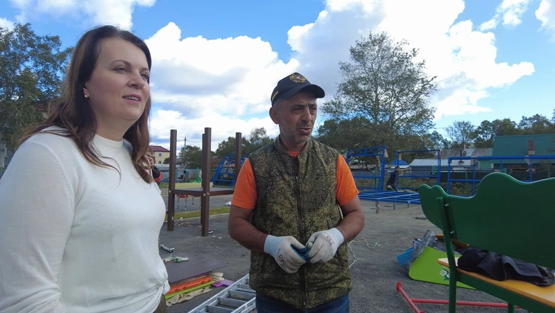 География инспекции мэра Анивой не ограничилась, из «Рябинки» Светлана Швец отправилась в Таранай. В этом селе рабочие торопятся обновить игровые площадки детсада «Березка». Работа кипит: на первый взгляд, по садику как будто пронесся циклон. Но, присмотревшись, понимаешь – идёт последний этап монтажа игрового оборудования, которое скоро облепят маленькие сахалинцы.