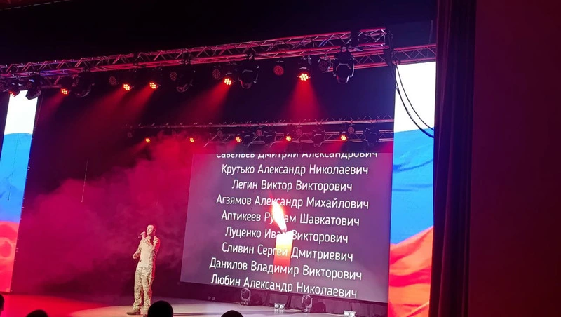 С номерами выступили ансамбль русской песни «Истоки», певицы Анна Гайдаева и Даната Ковалёва, Любовь Белоногова, ребята из театрального отделения, хореографический ансамбль «Импульс», а ещё – сержант Евгений Васюков – тоже участник СВО. Он исполнил скорбную песню «Уходите» (ударение на втором слоге), под которую на экране шли титры с фамилиями погибших земляков. Зрители слушали стоя. А затем была минута молчания.